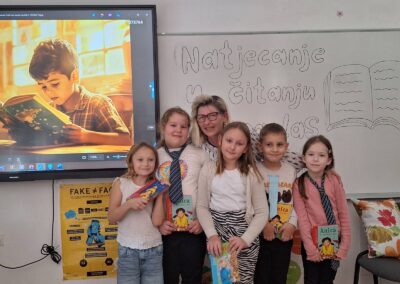 Početak Mjeseca hrvatske knjige obilježili smo Školskim natjecanjem u čitanju naglas. Mali i veliki hrabri čitači svoje su umijeće pokazali predstavljanjem omiljenog književnog naslova i tako pokazali da knjiga zaista može biti poticajno i zabavno iskustvo. Najuspješniji među njima, petaš Patrick Levanić i sedmaš Mladen Jurković, svoju su vještinu čitanja dokazali na županijskoj razini u OŠ Martijanec u pratnji učiteljice i mentorice Željke Rabuzin. Predstavili su ulomke iz romana Waitapu, Jože Horvata i Psima ulaz zabranjen, Melite Rundek, osvojivši visoko četvrto i peto mjesto među vrsnim čitateljima iz naše Županije.